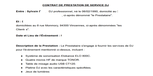 - Ci-dessous, vous trouverez un exemple de contrat détaillant les termes et conditions de mes services.